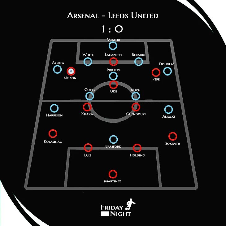 Причиной этому был персональный прессинг «Лидса» - два полузащитника работали по Джаке и Гендузи во время розыгрыша мяча, Филлипс прикрывал Озила. Таким образом, Мартинесу приходилось выбивать мяч, а учитывая, что у него плохой пас, команда Бьелсы и отсюда выносили пользу.