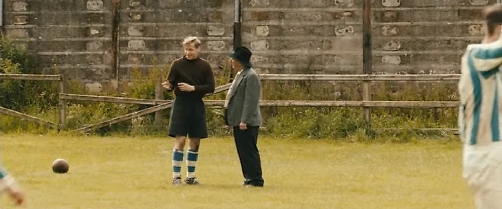 Мы не видим, как Берт становится лучшим игроком года. Для вас, пришедших сюда прочитать и про футбол тоже, это должен быть звоночек. Да, на протяжении какого-то времени показывается, как из всеми освистываемого нацистского преступника Берт превращается в звезду «Мэйн Роад», но его успехи… просто цитируются строчкой на экране. После первого часа, в котором мы видим в основном становление отношений с окружающими, это выглядит как-то странно.