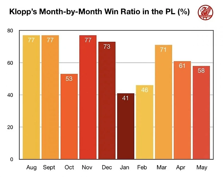 Если команде удастся пройти январь и февраль без ощутимых потерь, то пожалуй, это лишит преследователей последних крупиц надежды, если таковая у кого-то вообще имеется. Возможно будет прерван еще один негативный тренд Ливерпуля эры Клоппа - январская хандра. Сегодня хотелось бы расчехлить диванно-аналитическое вооружение и тезисно порассуждать о болезненности января для Клоппа.
