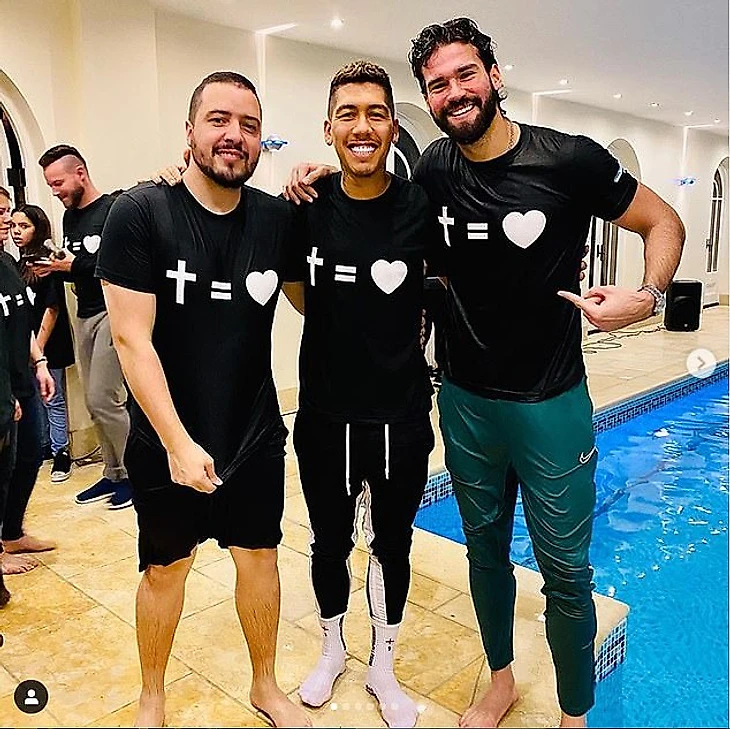 Алиссон расплакался после крещения Фирмино. Кажется, оба теперь состоят в церкви Хиллсонг