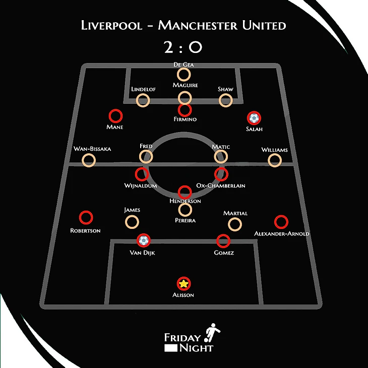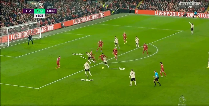 «Юнайтед» просто не сумел спроецировать своё доминирование на данном отрезке матча в создание опасных моментов у ворот Алиссона. Не было четких идей, не было нужного качества, и не было банального взаимопонимания среди футболистов. Апогеем вышеописанного стал эпизод позиционных мучений с участием бестолкового Уильямса.