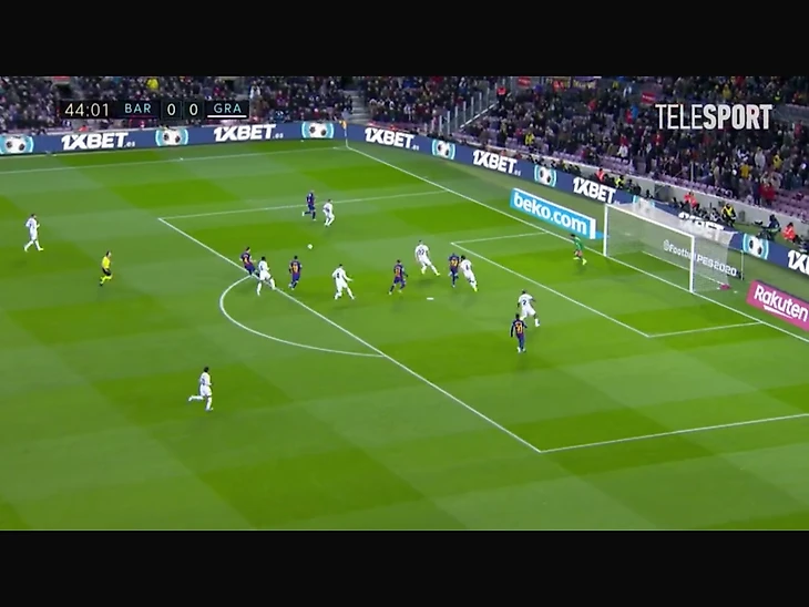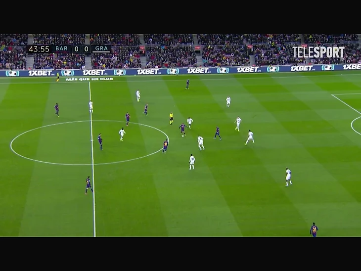 В матче с «Гранадой» было много ситуаций, когда каталонцы очень хорошо комбинировали через центр, стягивали туда большое кол-во соперников, а потом следовал логичный пас на фланг (Альбе или Фати). Часто такие моменты приводят к голам после прострелов, однако у «Барсы» не всегда получалось даже завершать комбинации – часто никто из игроков элементарно не успевал добежать до нужной позиции в штрафной.