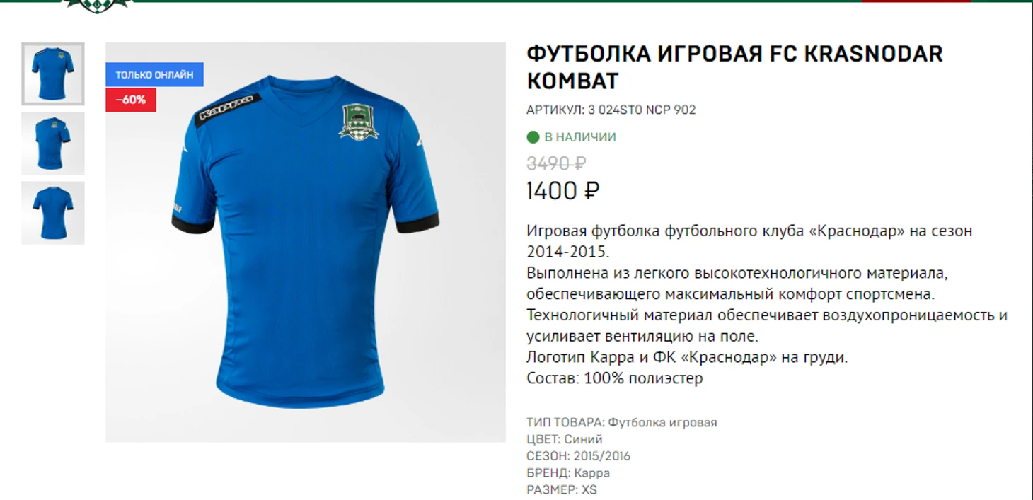 «Тамбов». Онлайн-магазина на сайте нет, только 17 товаров в группе VK, где нет клубной формы. Выводы делайте сами. 1/10