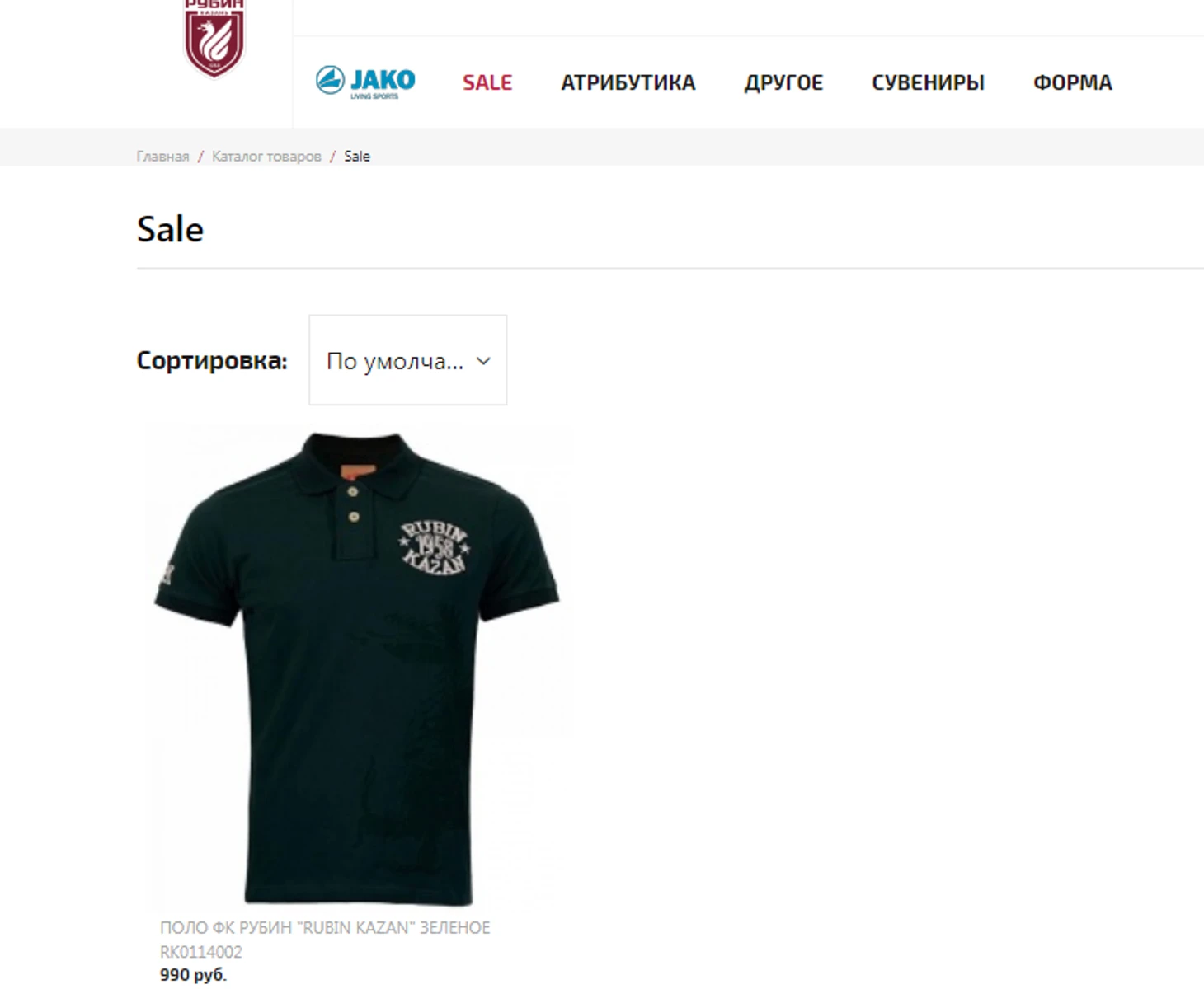 Распродажи. Скидочный раздел дарит нам неплохую рубашку поло за 990 руб. и... все. Но рубашка реально неплохая. На мой, несомненно, субъективный взгляд. Вывод. Интернет магазин у «Рубина» существует постольку-поскольку. Вроде и нужен, но применения ему не видят в клубе в плане заработка, судя по оформлению и лотам.