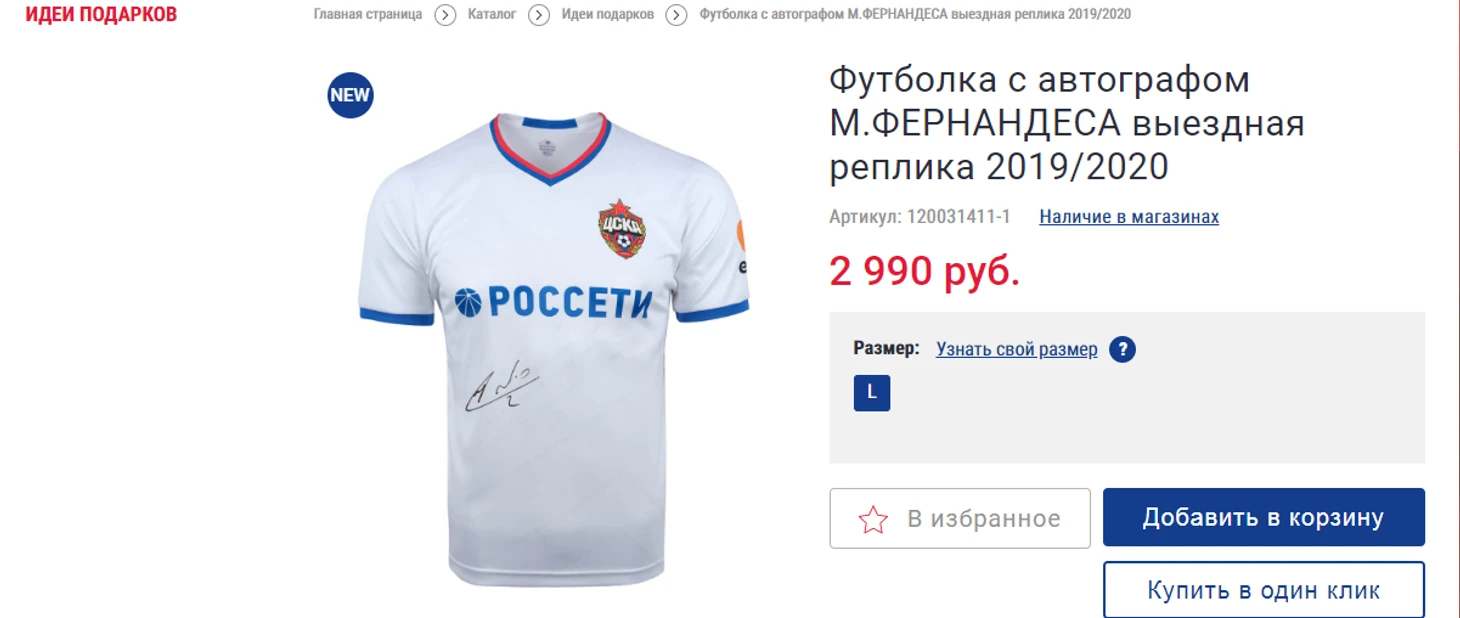 Цены в магазине ЦСКА и вправду радуют. Реплика формы этого сезона стоит 2490 руб. В особенности выигрышно смотрится черный вариант. Он подойдет даже на повседневное ношение. Так же интересная задумка с разделом «Идеи для подарков» где есть, как и что-то простенькое и не дорогое (Power Bank, часы), есть, что-то редкое и неожиданное, как футболка Марио Фернандеса с автографом за 2990 руб. Кому-то очень повезет.