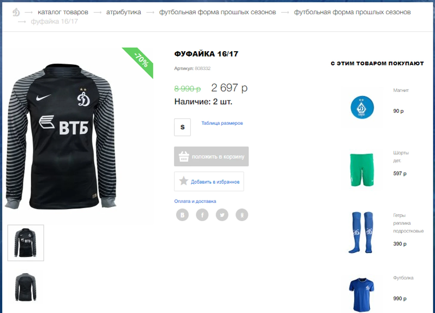 Распродажи. В уцененных товарах можно найти формы старых сезонов по 2697 руб, оригиналы – как альтернатива реплике актуальной формы, но в целом не заманчиво. Забавно, что футболки с длинными рукавами у них подписаны как «фуфайка». Возможно это отсылка к чему то, если кто знает, отпишите в комментариях.