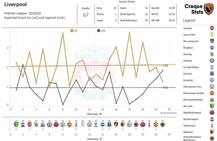 xG статистика «Ливерпуля» в АПЛ сезона 2019/20