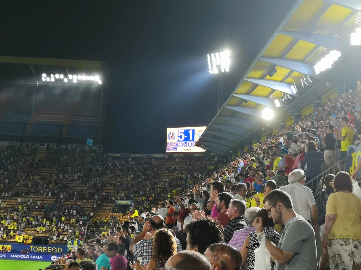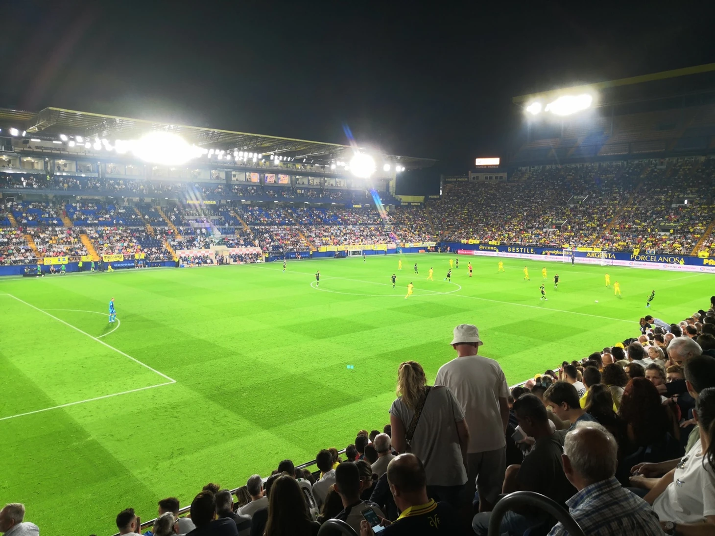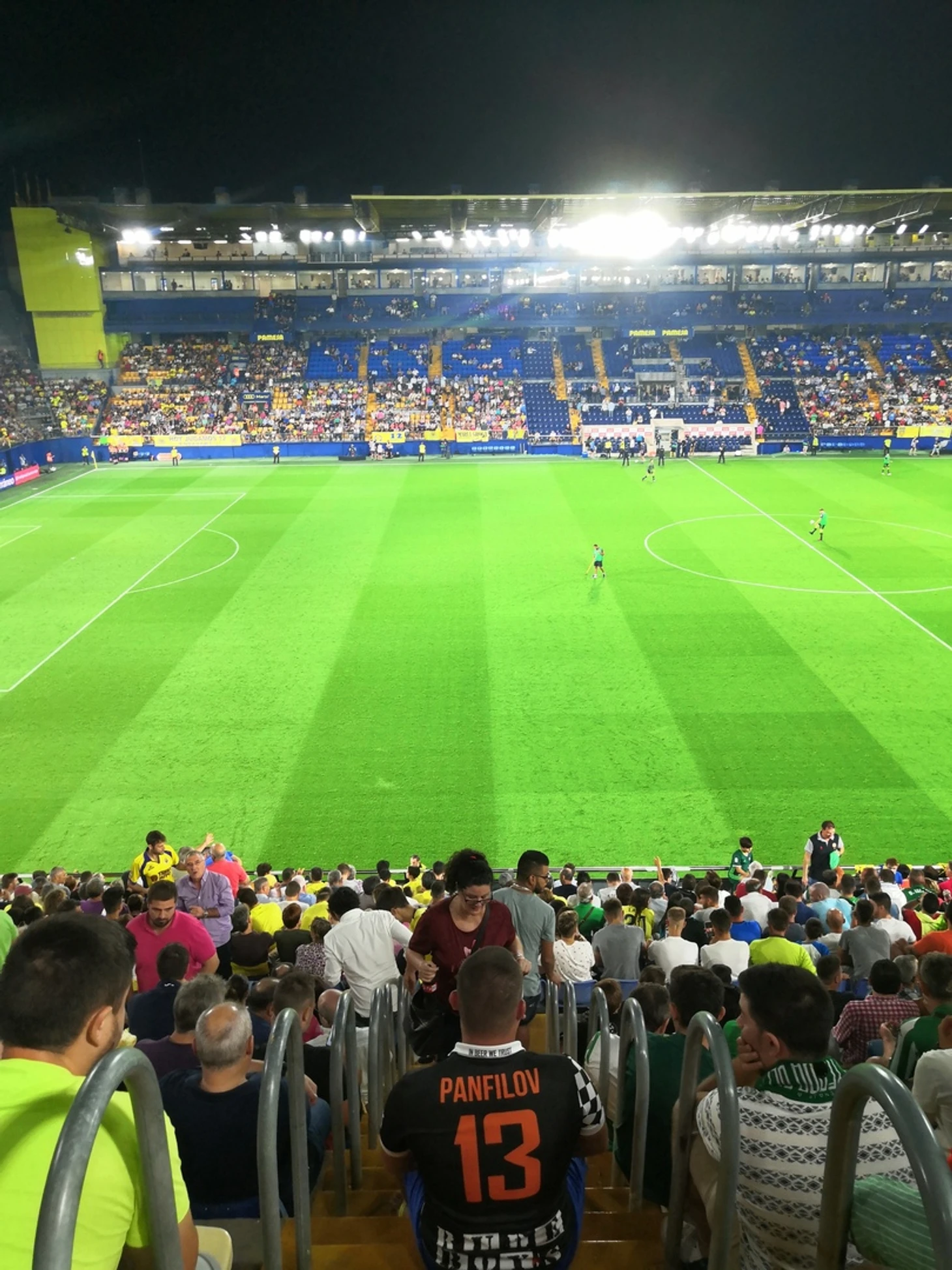 Заметил, что в Испании почти нигде нет сеток за воротами, поэтому процесс разминки перед матчем превращается в целое развлечение, тк каждый третий удар летит на трибуну. Запасные сидят как во дворе - на обычной лавке) без козырька даже, поэтому можешь кинуть на голову им, по идее, что хочешь. Гостевой сектор находится за воротами и представляет собой третий ярус, надстроенный над стадионом, к тому же он полностью остеклен) будете как в аквариуме себя чувствовать( добавлю фото трехлетней давности с той трибуны) не советую. Продают очень вкусные хот-доги, всего 3€. На стадионе есть колясочная, прям около входа на сектора, там много детского транспорта, тк ходят прям с грудными. Очень много молодых болельщиц женского пола, прям филиал Локомотива местный). Пиво безалкогольное. Дома настолько близко, что с сектора выходишь прям во двор дома и через него уже на улицу).⠀