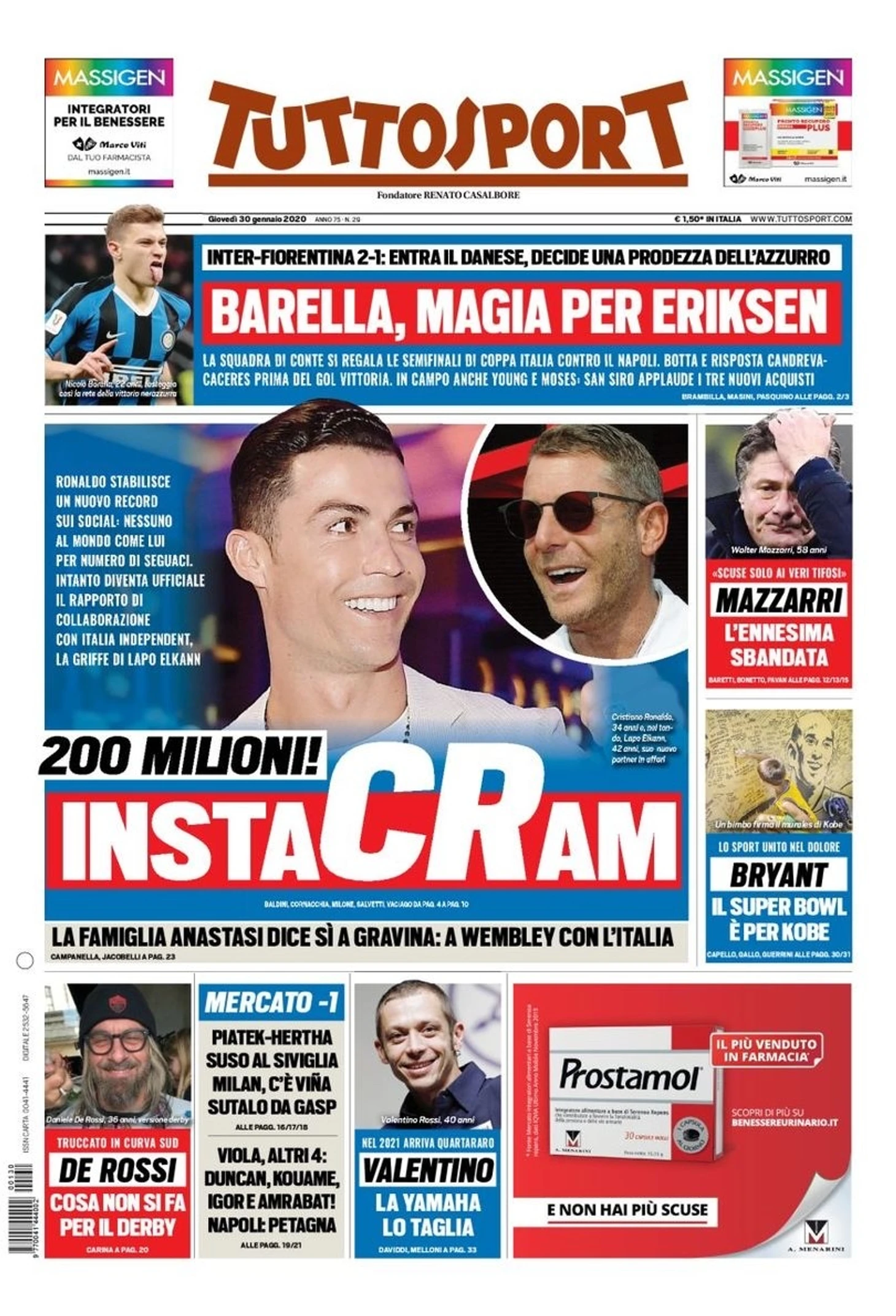 «Юве» пропускает по голу за игру. Этого не случалось со времён Дельнери. Роналду – первый, кто достиг 200 миллионов подписчиков в Инстаграм.