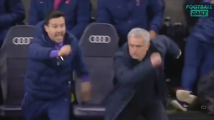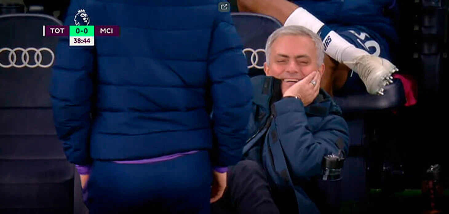 Жозе Моуринью в топовом матче – это гарантированное шоу. Когда в первом тайме Майк Дин попросил ассистентов посмотреть фол Стерлинга на Деле Алли в штрафной, это вызвало у португальца невероятные эмоции.