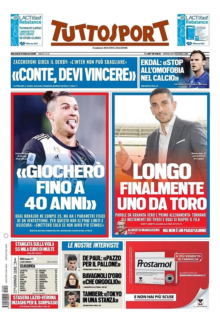 Большое интервью Эриксена перед Миланским Дерби, пояснения от Коммиссо, новые тренеры в «Торино» и «Брешии», а также 35-летие Криштиану – в утреннем обзоре заголовков итальянских спортивных изданий в блоге «В гостях у Кальчо».