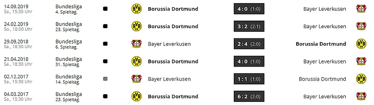 «Байер» ни разу не обыграл Дортмунд в шести последних матчах, а в последних десяти одержал победу всего лишь раз.