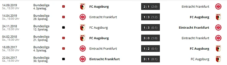 «Аугсбург» выиграл две последние встречи против «Айнтрахта» с общим счетом 5:2.