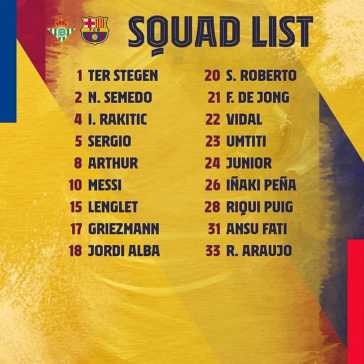 В 23-м туре Ла Лиги, который "Барселона" встречает на второй строчке турнирной таблицы, "сине-гранатовым" предстоит выездная игра против "Бетиса". В заявку на матч Кике Сетьен включил 18 футболистов.