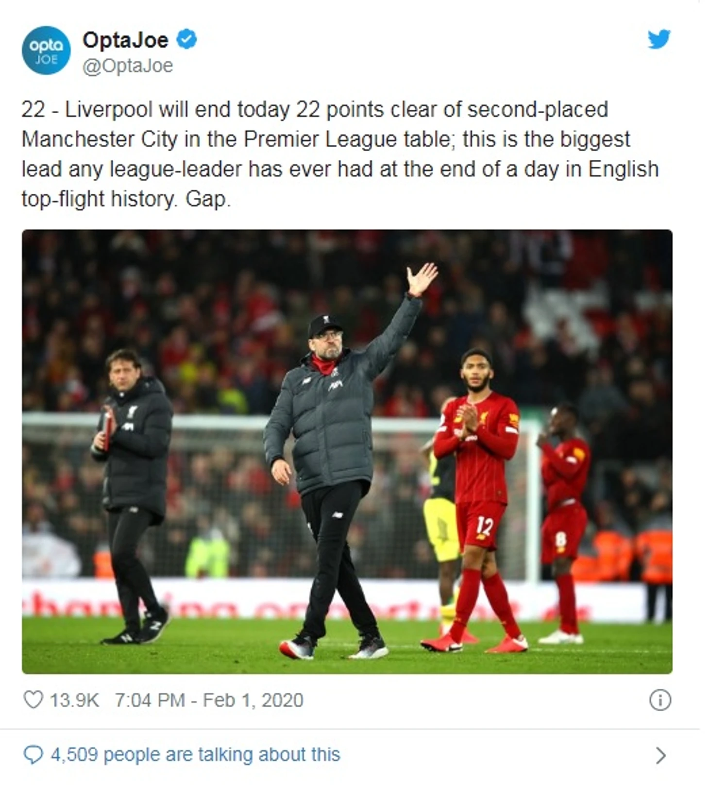 Курьезное поражение «горожан» в очном поединке с «Тоттенхэмом» (0:2), случившееся за день до матча «красных» со «святыми», ознаменовало самый внушительный отрыв лидера от ближайших преследователей за всю историю существования высшего дивизиона Англии. Этот факт кажется еще более удивительным, если вспомнить другие великие команды, в свое время доминировавшие на полях Туманного Альбиона: «Непобедимые» Арсена Венгера (2003/04), всесокрушающий «Сити» Хосепа Гвардиолы (2017/18), беспощадный «Челси» Жозе Моуриньо (2004/05). Каждая из них претендует на звание лучшей в истории английской Премьер-лиги. Нынешний «Ливерпуль» имеет все шансы стать членом этого закрытого клуба.