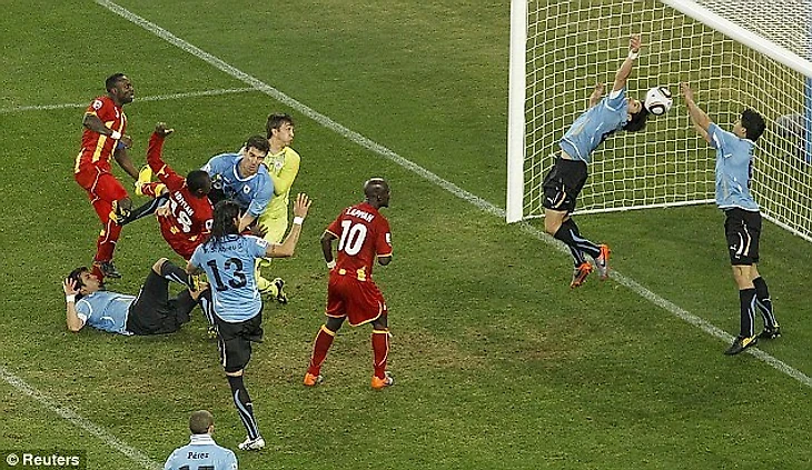 Это умышленное действие уругвайца позволило спастись от пропущенного мяча на последней минуте овертайма. И кто знал, что Гьян, игрок сборной Ганы, промахнётся и упустит такую возможность… Позже Уругваю удалось выиграть этот матч и пройти в полуфинал по серии пенальти, а Суарес стал одновременно героем и злодеем ( обвинения в расизме и так далее)