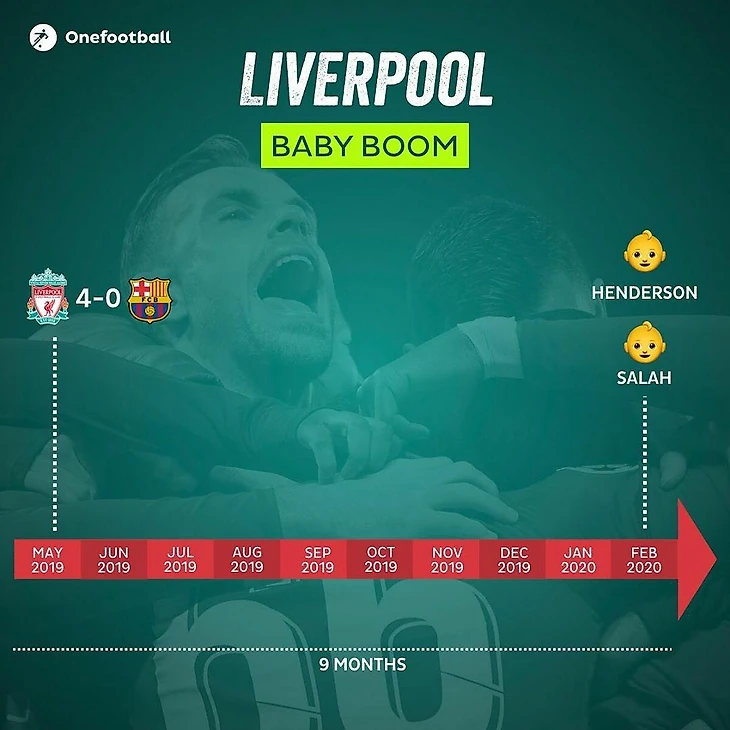У Салаха и Хендерсона родились дети спустя 9 месяцев (в один и тот же день) после легендарного камбэка над "Барселоной".