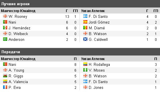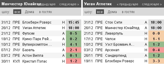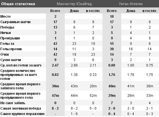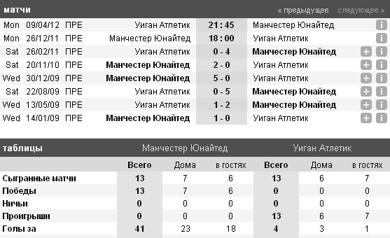 Все 13 матчей оканчивались в пользу «Манчестер Юнайтед», всего «Редс» забили 41 гол в ворота «Уиган Атлетик» и пропустили 4 мяча в свои ворота.