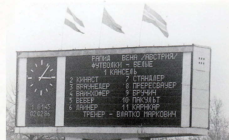 Табло ташкентского стадиона «Пахтакора» со стартовым составом «Рапида» (фото А.К. Хорин)