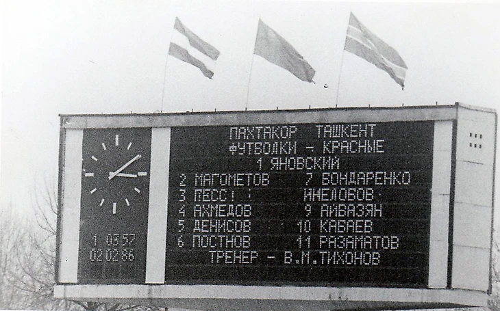 Табло ташкентского стадиона «Пахтакора» со стартовым составом «Пахтакора» (фото А.К. Хорин)
