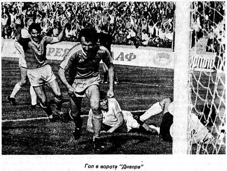 Поединок, несмотря на нули, получился интересным. Но, все же, главные события развернулись под занавес матча, когда Лобановский уже провел две замены. На заглавном фото Протасов смотрит на мяч, и еще не знает, что в верховой борьбе за него получит травму, которая могла поставить крест на его дальнейшей спортивной карьере. Дальше смотрим второе, и третье фото, читаем под ними репортаж.