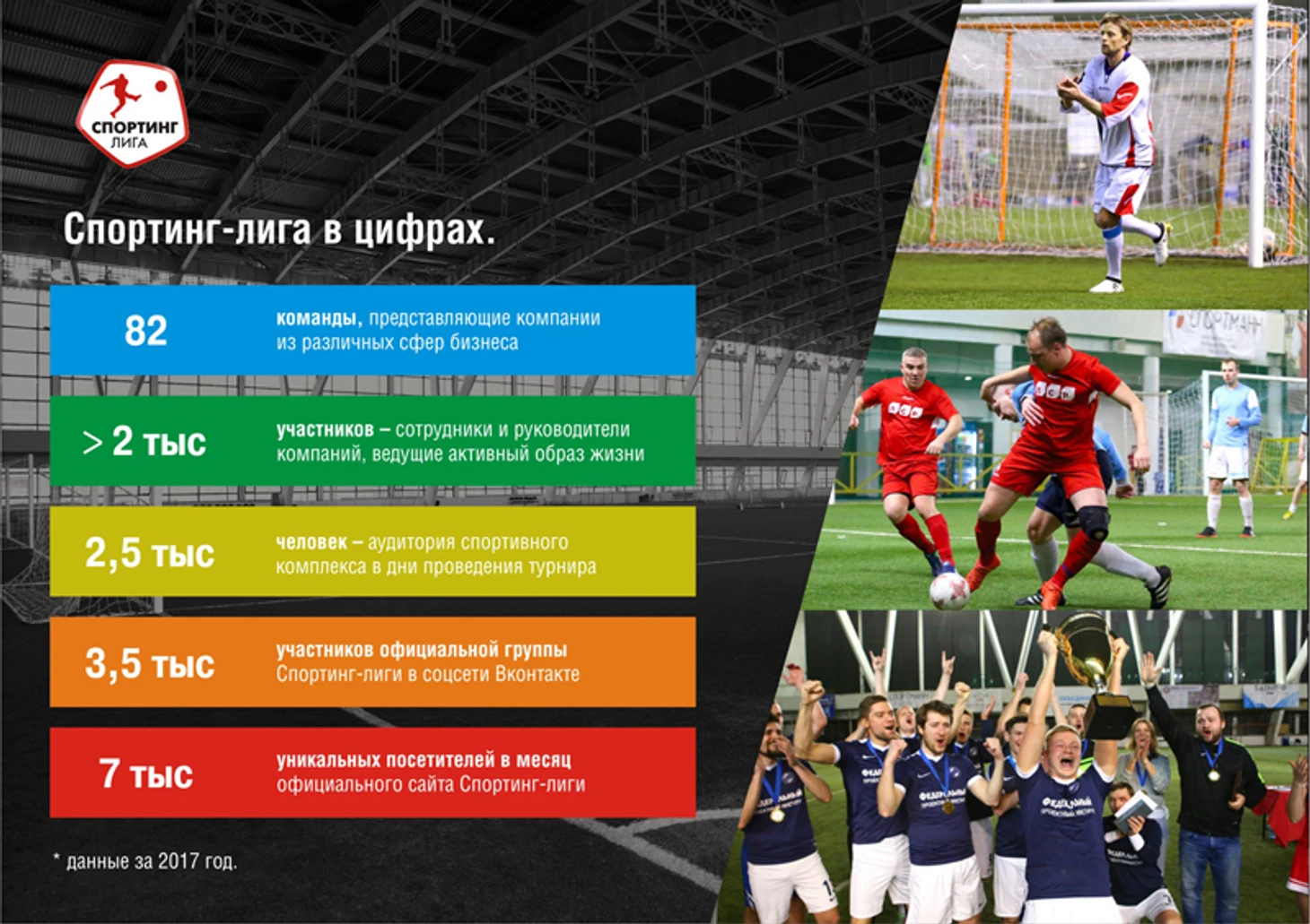 "Мы считаем, что "Спортинг-лига" это ключевой корпоративный футбольный турнир Санкт-Петербурга. Турнир стартовал еще в 2008 году и все это время проводится во Дворце спортивных игр "Зенит".Наши приоритеты такие: спортивная составляющая всегда на первом месте, правила едины для всех участников, профессиональное освещение и проведение матчей."