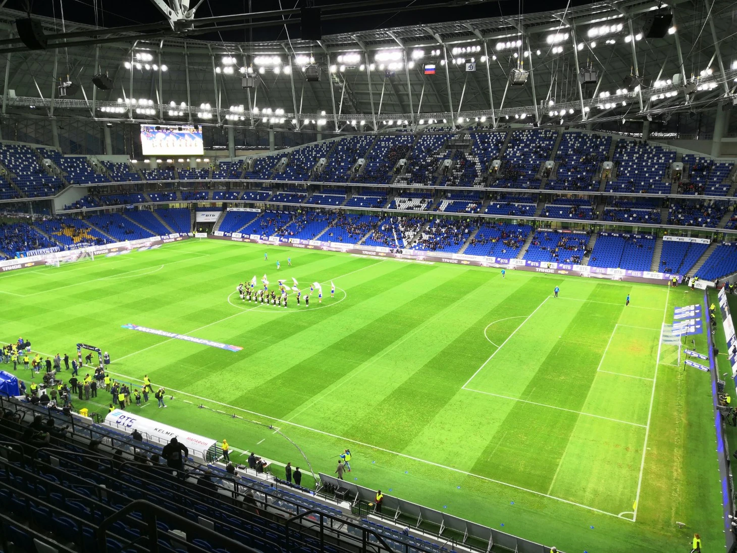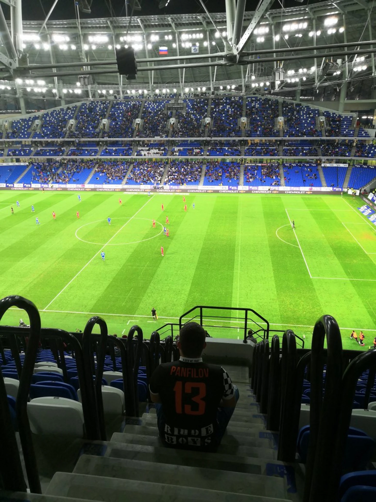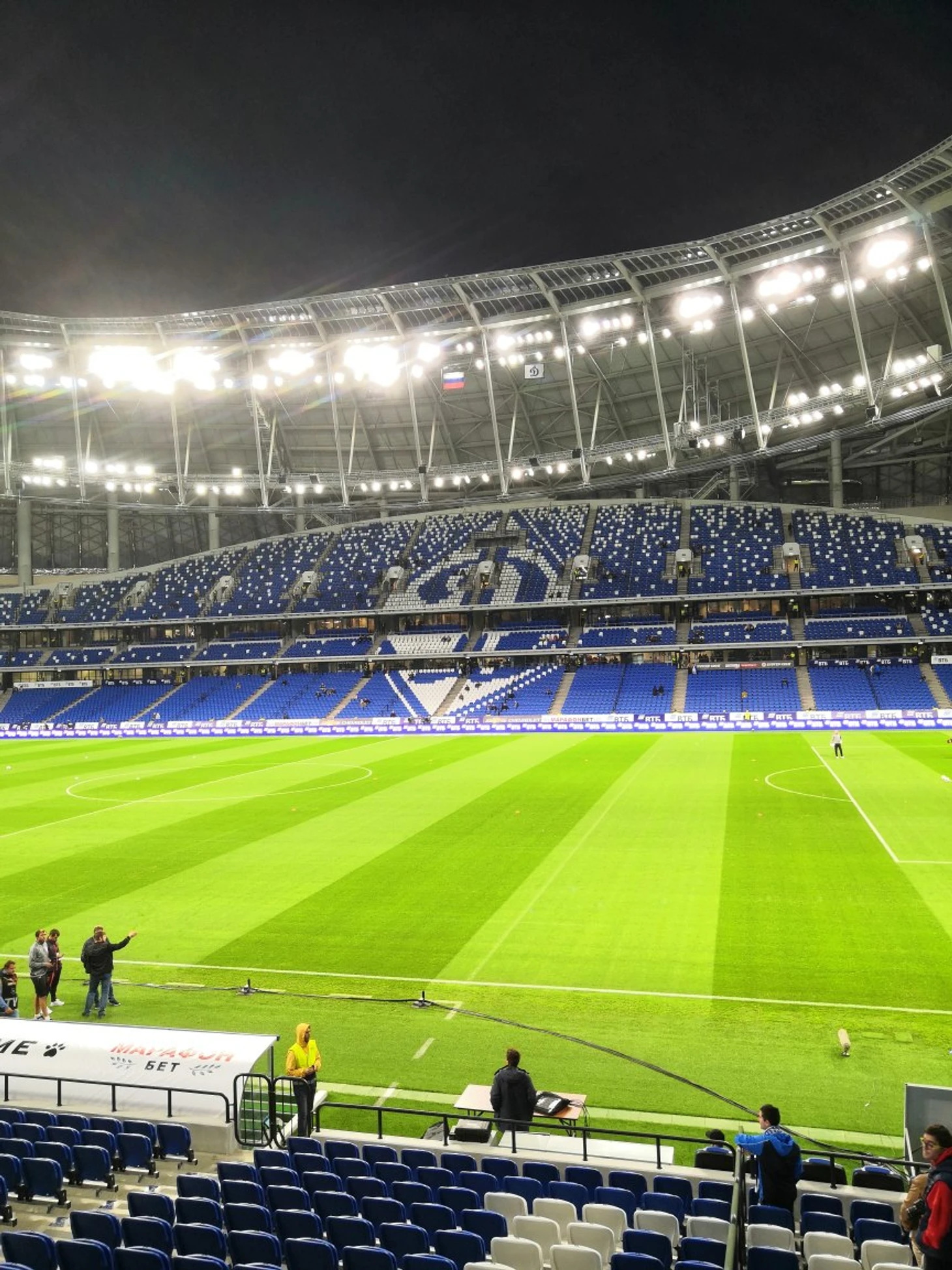 Классный небольшой стадион, все очень чисто и аккуратно. Находится прямо около метро. Уютный такой. Очень впечатляющее световое шоу во время представления команд. Видимость отличная, можно рассмотреть татуировки игроков даже с верхних ярусов, как-то грамотно все сделано в этом плане. Вот все шикарно: и уровень стадиона, и цены, и персонал очень приветливый, и все такое современное, но... Так как это РПЛ - заполняемость меньше трети. Думаю где-нибудь в Германии на такой стадион не было бы мест ни на один матч. Дождь не помеха - крыша над всеми трибунами. Кормят вкусно и разнообразно, пиво безалкогольное.