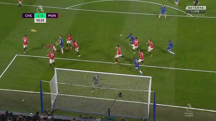 Игроки Челси осадили штрафную Юнайтед, но участившиеся стандарты не принесли результата хозяевам. Мейсон Маунт успел попасть в штангу со штрафного, но ворота Давида Де Хеа остались не распечатанными.