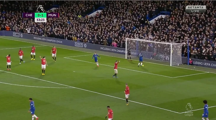 На 54-ой минуте мне приглянулся очень забавный момент. Весь первый тайм у форварда Челси не шел мяч в ворота, но после удара Маунта, который Де Хеа отразил в штангу, прозвучал свисток арбитра, а Миши остался один на один с пустыми воротами и отскочившим к нему мячом.