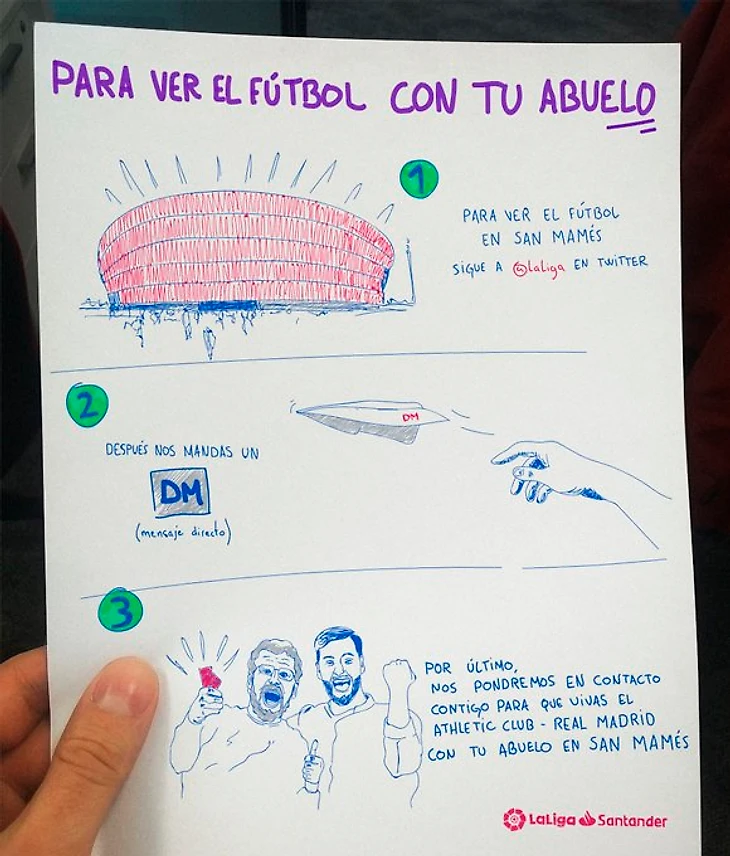 История Хуана и его дедушки не осталась незамеченной и в руководящих кругах испанского футбола. Так, Ла Лига разработала графическую инструкцию для наших героев, благодаря которой, те смогут получить два билета на матч "Атлетика" против мадридского "Реала".