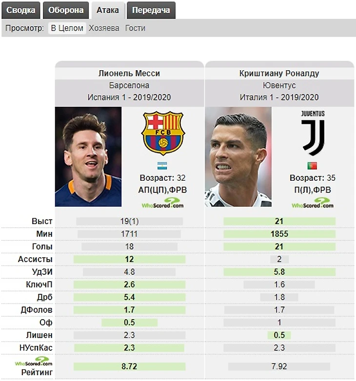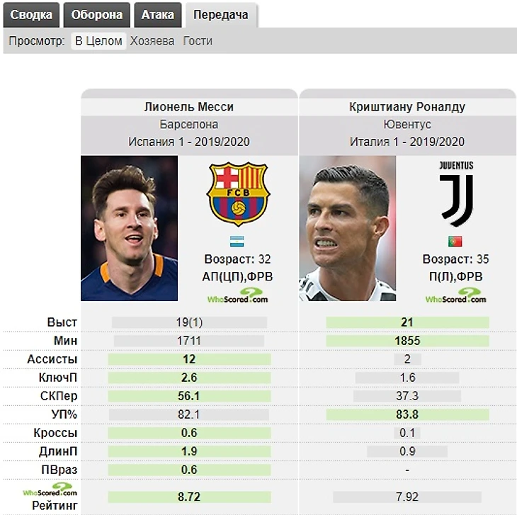 Сравнительная статистика Месси и Роналду в чемпионате в сезоне 2019/2020: