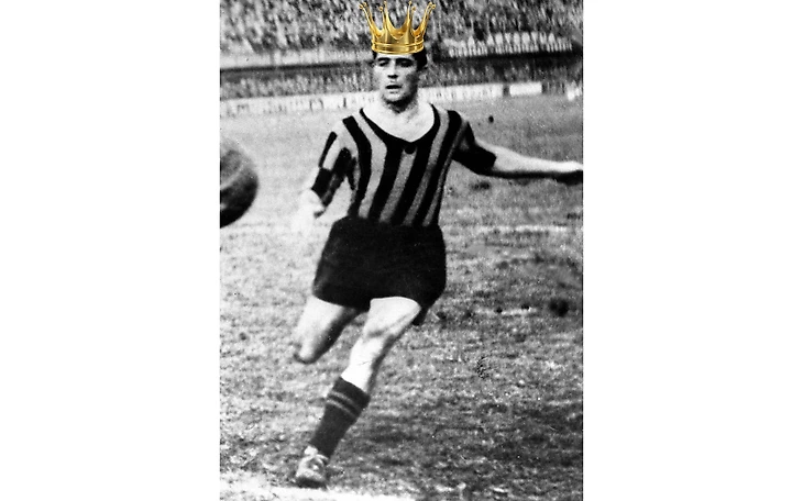 Снова не сильно проще определить короля эпохи. Человек-стадион - Джузеппе Меацца. Двукратный чемпион мира в составе сборной Италии бо́льшую часть карьеры играл за «Интер», хотя с детства болел за «Милан». К сожалению для молодого парня, в чёрно-красную команду его не взяли, зато за черно-синих он забил почти 300 голов. Справедливости ради, ближе к окончанию карьеры поиграл он и за «Милан».  Джузеппе Миацца сыграл за сборную 53 матча и забил 33 гола — он до сих пор является вторым бомбардиром в истории «Скуадра Адзуры». Щуплый нападающий, который к 18 годам весил около 40 килограмм отличался очень большой для тех лет скоростью и высокой техникой обращения с мячом. Ну и кроме всего прочего, именно его именем назван главный футбольный стадион в Италии.