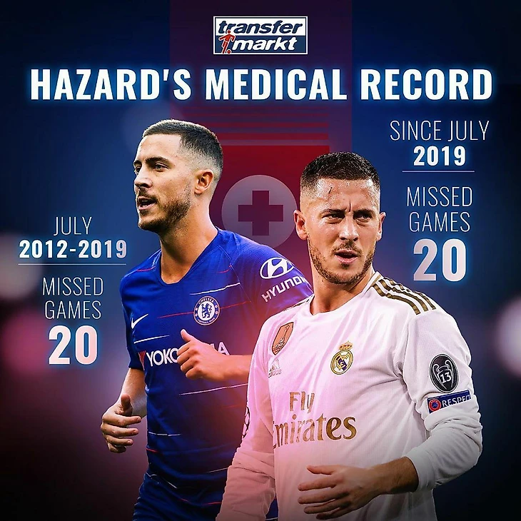 Эден Азар за неполный сезон в "Реале" пропустил столько же матчей, сколько за 7 лет в "Челси".