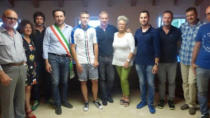 Тонин на вручении именной награды от представителей своего первого детского клуба "Брольяно" и членов городского совета. Чествовали Риккардо летом 2017-ого за достижения: вызов в национальную сборную и победа с "Миланом" в чемпионате Италии.