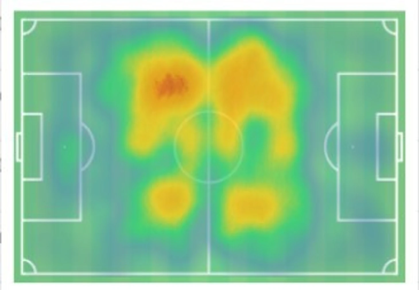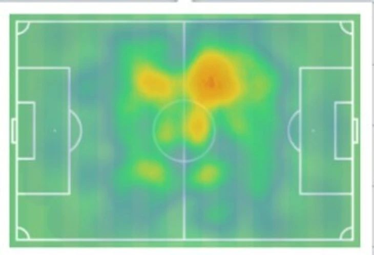 Тепловая карта Крыховяка в играх премьер-лиги за 2019/2020 сезон.