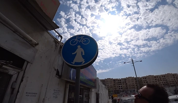 А вот так в Катаре обозначают пешеходную зону и велодорожку.