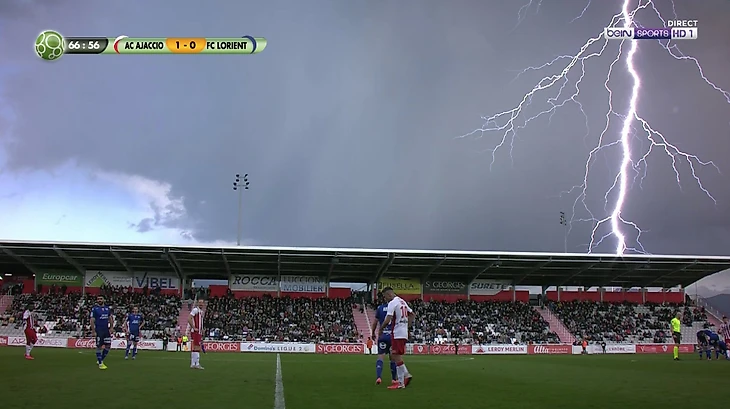 Фантастический кадр сегодняшнего матча Лиги 2 между недавними участниками высшего дивизиона. Кстати, "Аяччо" выиграл у "Лорьяна" и вышел на вторую строчку, приблизившись на расстояние двух очков к своему сегодняшнему сопернику.