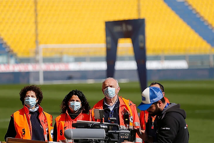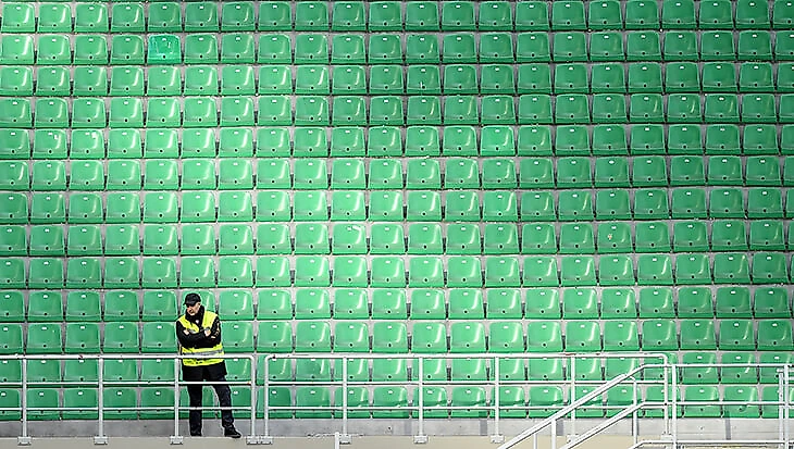 Стадионы без зрителей, но не совсем пустые: на них все равно есть обслуживающий персонал, работники телевидения, судьи.