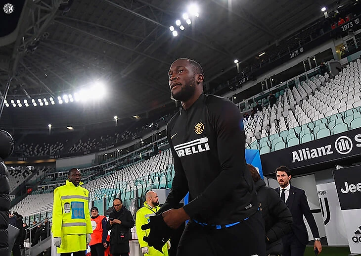 Ромелу Лукаку выходит на разминку. Трибуны встречают его тишиной.