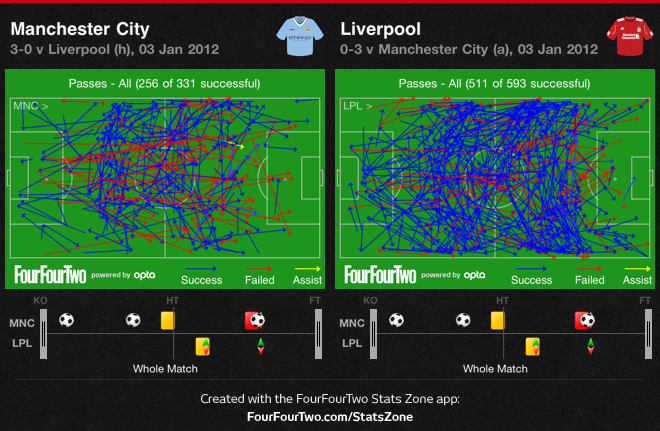 Следует сказать, что «Ман Сити» не только проиграл матч в статистическом отношении, но и действительно провёл не лучшую для себя игру, тогда как «Ливерпуль» вполне неплохо сыграл первым номером. Каждому голу манкунианцев предшествовал хороший шанс, предоставлявшийся сопернику: выход Даунинга на рандеву с Хартом, удар Хендерсона со штрафного и внезапный оптимизм после удаления Барри. Стандартные положения и отдельные ошибки стоили «Ливерпулю» дорого.