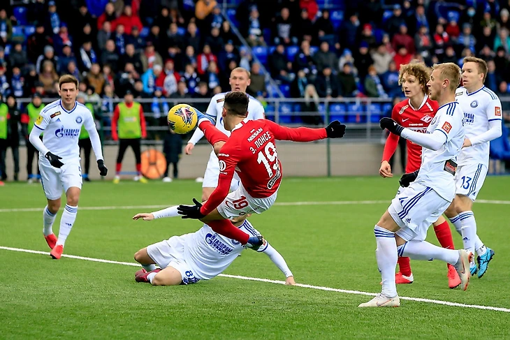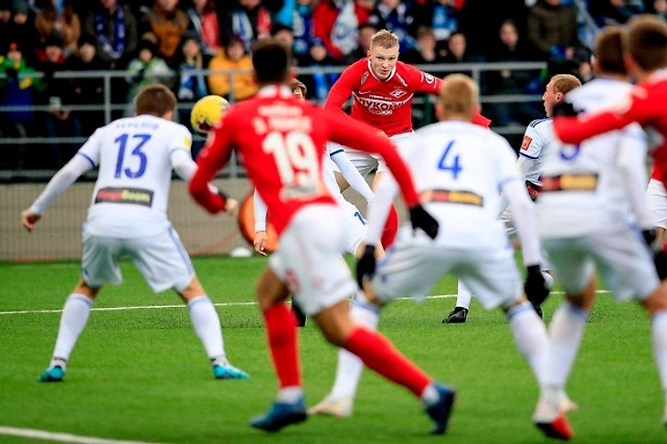 Спартак кстати наконец-то закрепился в атаке, и пусть не угрожая напрямую воротам, принялся искать свой шанс. Всё чаще с мячом в центре, в качестве "разводящего" оказывался Бакаев. Всё чаще команда выстраивалась большими силами вдоль штрафной соперника. Правда чаще всё же "заброс" или "парашют" вперёд делал Джикия, и опасности это не создавало. А вот у своих ворот бывало не спокойно. Защитники не всегда успевали и Максименко вместе с Масловым вынуждены были откровенно спасать ворота. Особенно опасно провалилась оборона на 68-й минуте, когда отчаянный бросок в ноги Максименко не позволил пробить по воротам нападающему хозяев поля.
