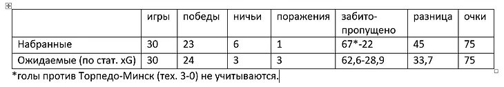 В прошлом сезоне эта банда (ряд игроков сами себя называли бандой «морских котиков») скинула с царского трона БАТЭ, который восседал на нём 13 лет подряд. Лишь одно поражение в сезоне от минских одноклубников, 23 победы в 30 турах. По ожидаемым забитым/пропущенным голам (1-е и 3-е место в лиге соответственно) тоже в целом всё здорово.