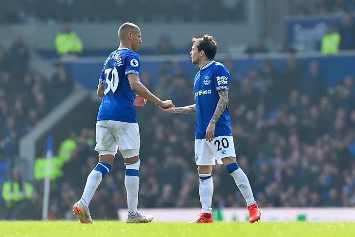 У соседей «Ливерпуля» - «Эвертона» - бразильская история совсем небогатая. Их первым игроком был арендованный в 2002 году бразильский нападающий Родриго, который выходил на матчи в джерси с надписью Родригол, но в итоге не забивший ни одного гола. Ещё был полузащитник Андерсон Силва, проведший в 2006 году только одну игру за «ирисок», а также непутевый Жо, от которого «Сити» пытался избавиться, отдавая его в аренды. Сейчас же за команду играют Ришарлисон и Бернард. Ришарлисон в данный момент, наверное, лучший игрок «Эвертона» и главынй претендент на попадание в топ-клуб, а вот Бернард после трансфера из «Шахтера» показывает не самую яркую игру.