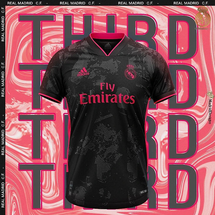 Гостевая форма будет розовой с тем же принтом. А третий комплект — черным с розовыми деталями. Полосы Adidas в этот раз будут расположены не на рукавах, а по бокам.