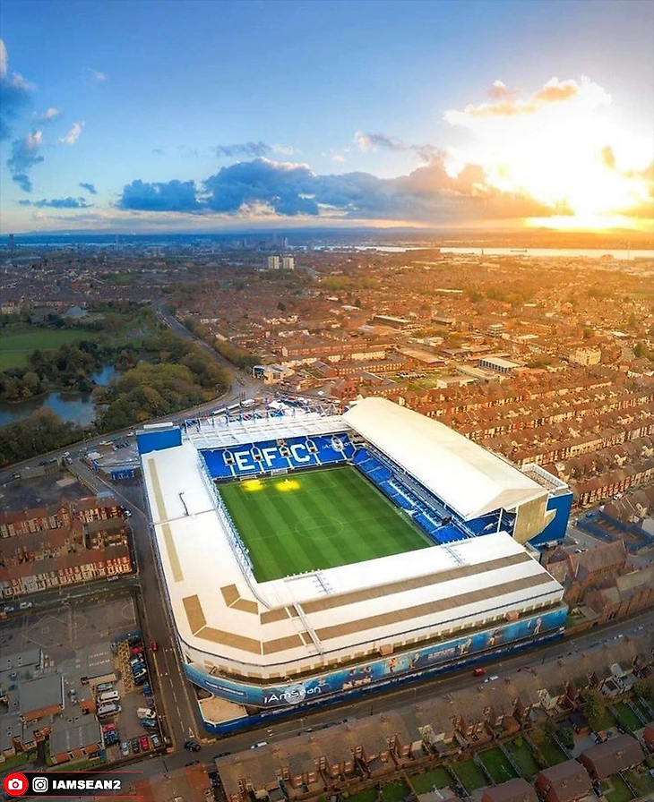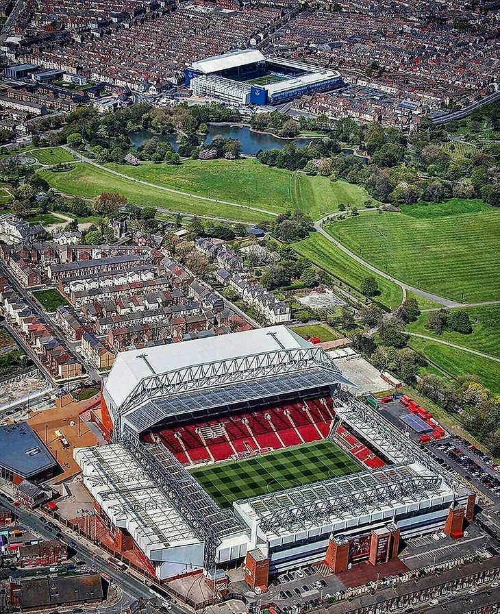 По соседству находится стадион «Ливерпуля» и расстояние между «Энфилдом» и «Гудисон Парком» меньше одного километра.