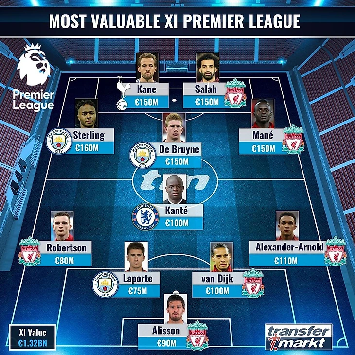 Авторитетный портал Transfermarkt опубликовал символическую сборную, состоящую из самых дорогих игроков АПЛ прямо сейчас. Шестеро из 11 футболистов представляют "Ливерпуль".