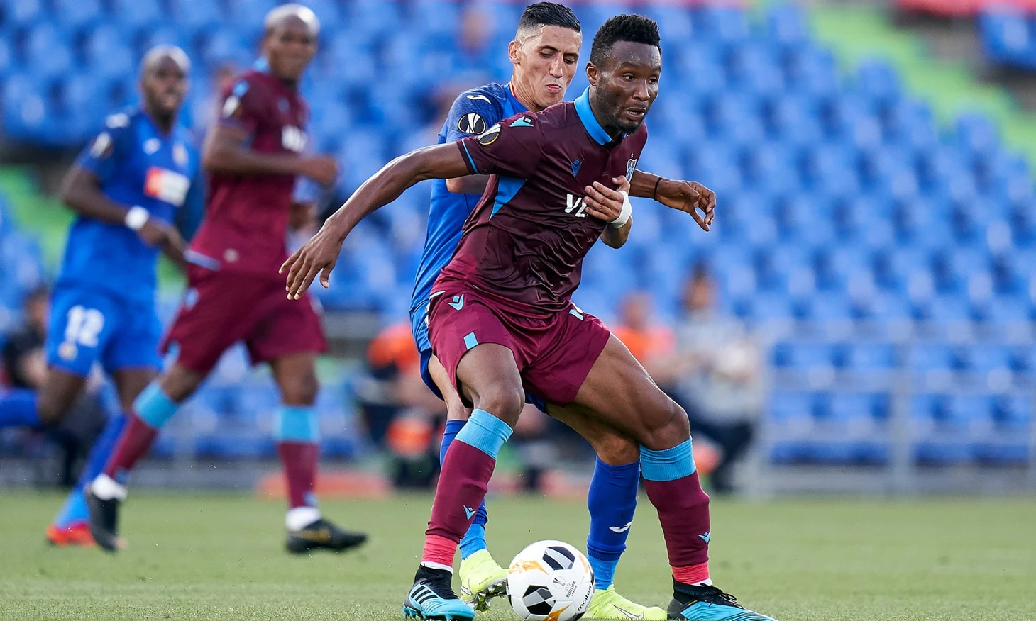 Джон Оби Микел сдерживает Файкала Файра из Хетафе в матче Лиги Европы в Сентябре.
