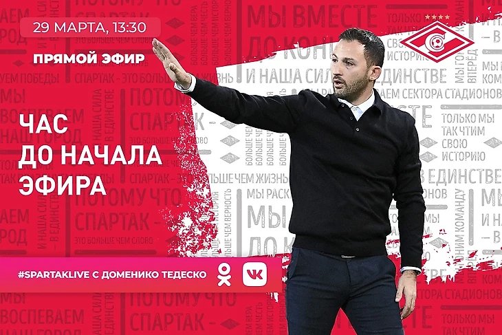 Главный тренер «Спартака» Доменико Тедеско ответил на многочисленные вопросы болельщиков в прямом эфире. Трансляция велась в официальных пабликах красно-белых в социальных сетях «ВКонтакте» и «Одноклассники».