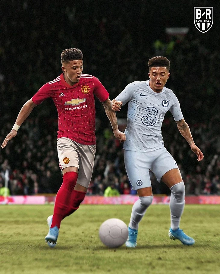 Пока еще дортмундский Джейдон Санчо, в форме команд («МЮ» и «Челси»), куда активно сватают игрока СМИ.