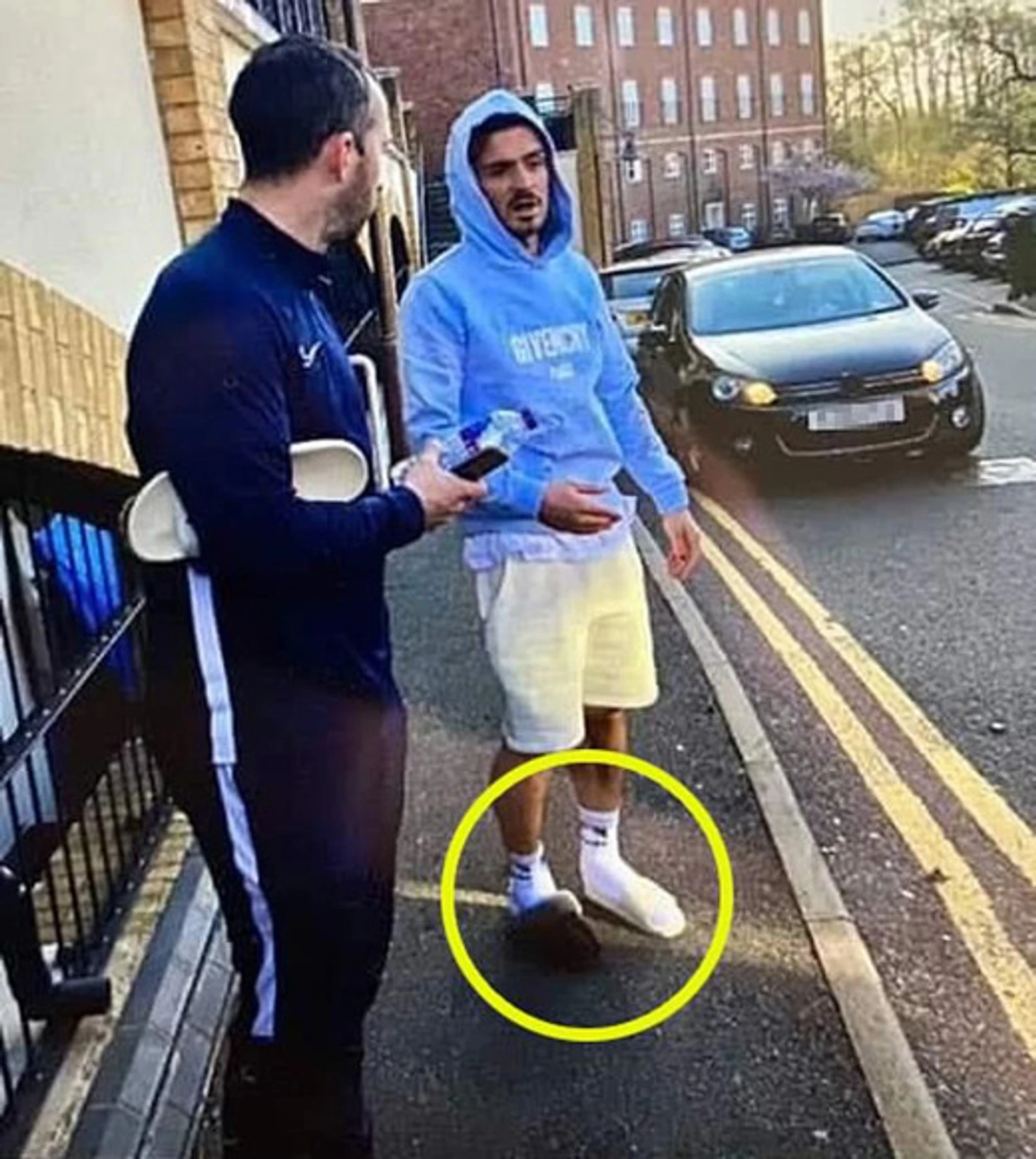 В воскресенье по социальным сетям разошлись изображения, на которых Грилиш стоит в одном шлепанце и одном тапке возле своего разбитого Range Rover стоимостью 70 тысяч фунтов, на котором его прежде видели на тренировочной базе «вилланов».